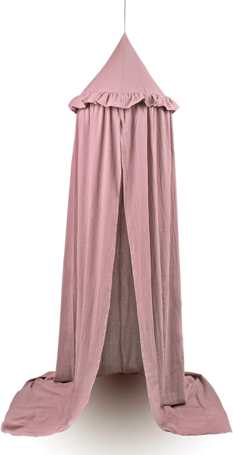 Kids Bed Canopy with Frills Cotton Cover Net for Crib Reading Nook Curtain Hideaway Hanging Round Tent Nursery Bedding Play Room Decor