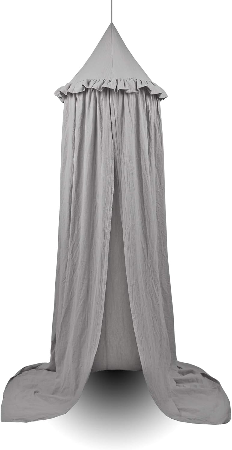 Kids Bed Canopy with Frills Cotton Cover Net for Crib Reading Nook Curtain Hideaway Hanging Round Tent Nursery Bedding Play Room Decor