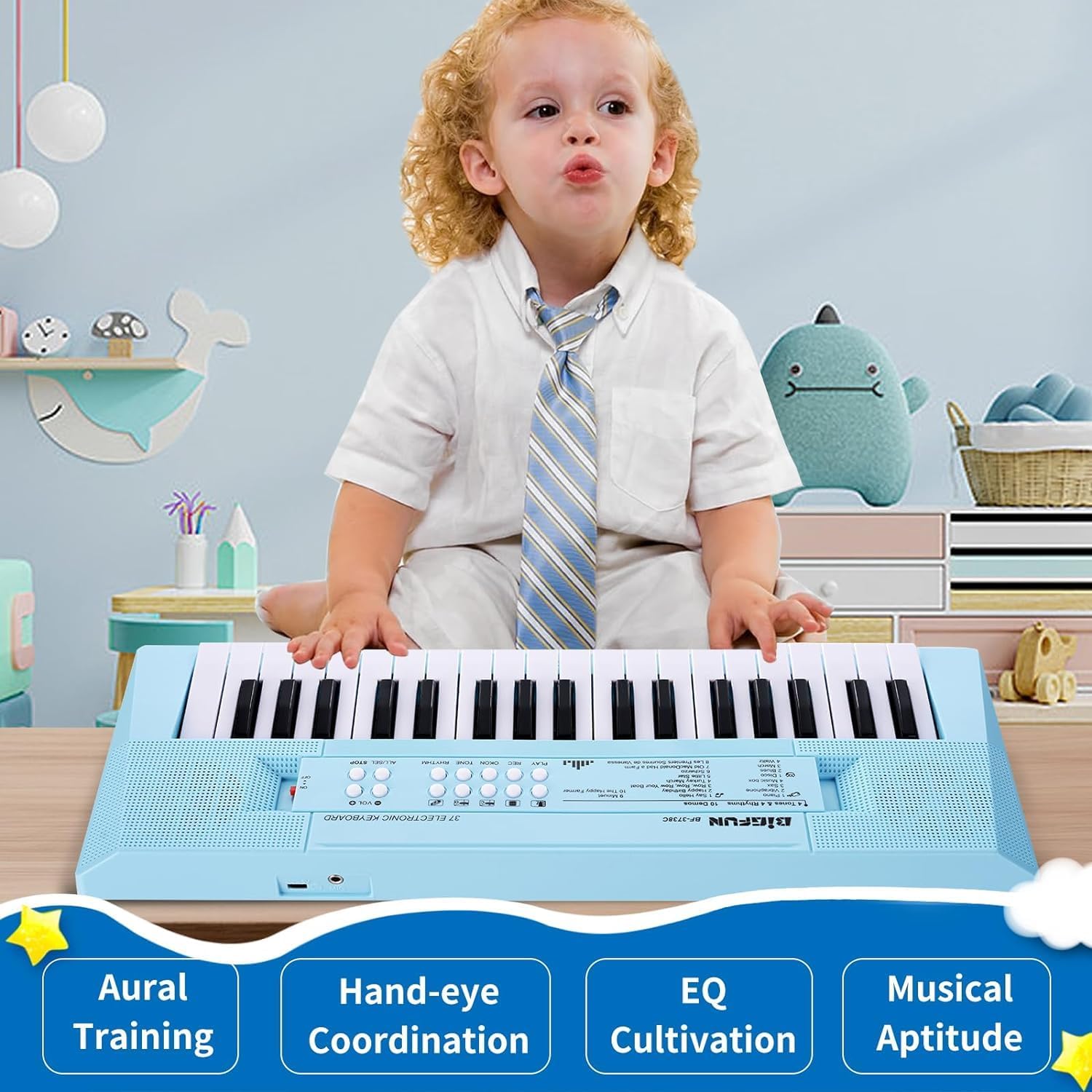 Kids Piano Keyboard, 37 Keys Portable Music Keyboard Early Learning Educational Electronic Music Piano Instrument Toys for 3 4 5 6 Year Old Boys and Girls (Blue)