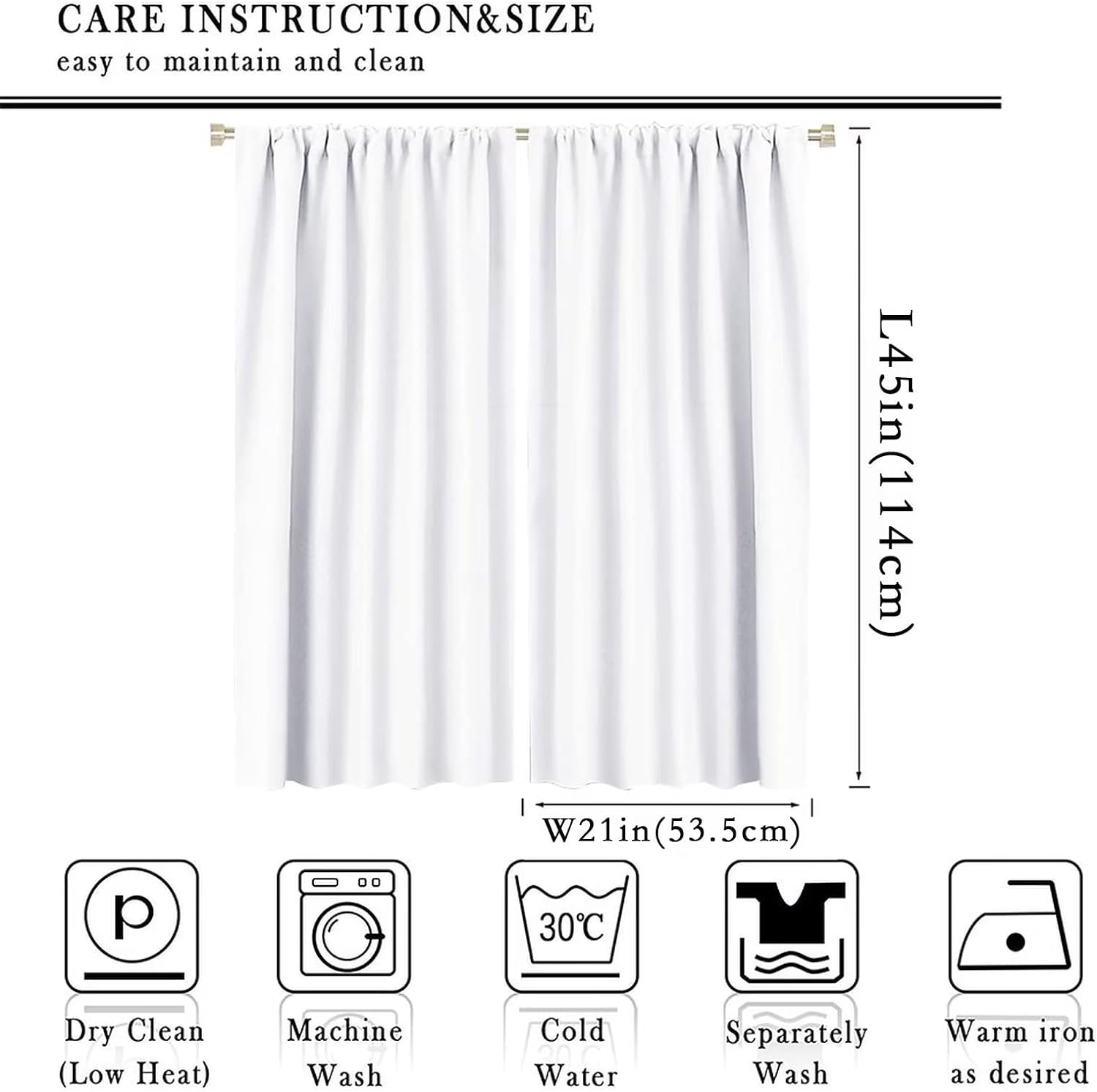 - 【Size】The package includes 2 blackout window curtain panels. The size of a single curtain is 21" (W) x 45" (L) (L),and the overall size is 42" (W) x 45" (L).The panels have a 3" rod pocket suitable for standard curtain or decorative rod.