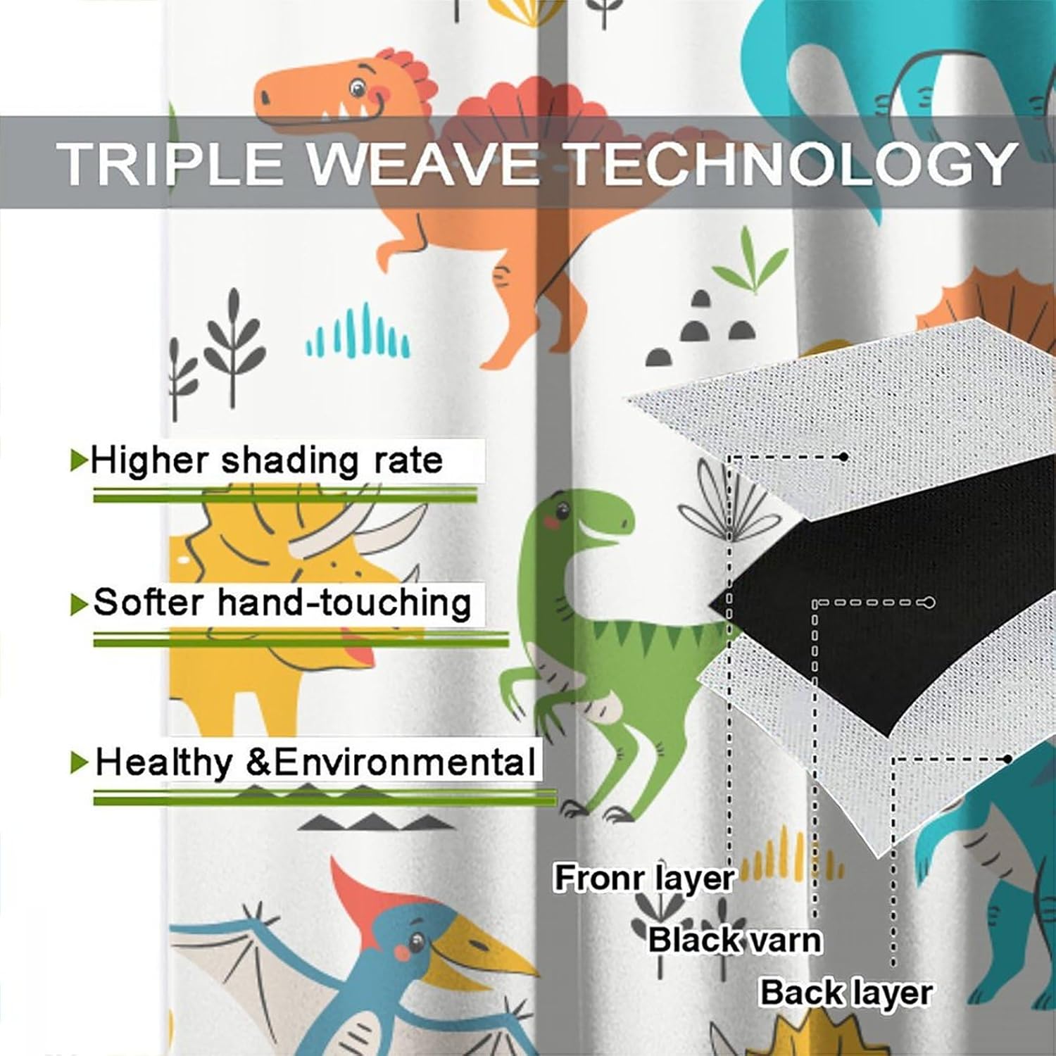 Kids Dinosaur Curtains for Boy Girl Bedroom Decor Cartoon Dino Colorful Cute Funny Animal Wildlife Printed Blackout Rod Pocket Window Drapes for Baby Nursery Playroom Living Room W21xL45in 2 Panels