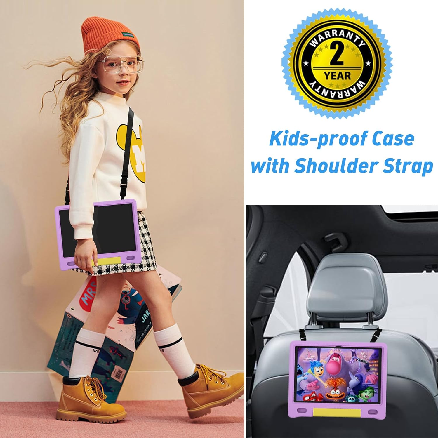 - WHAT YOU GET: Comes with everything your child needs: a 10.1" kids tablet (Android OS, 64GB, Octa-core CPU), lightweight EVA kid-proof case with stand, adjustable shoulder strap, USB Type-C charging cord (6.6 feet), wall charger, and user manual.