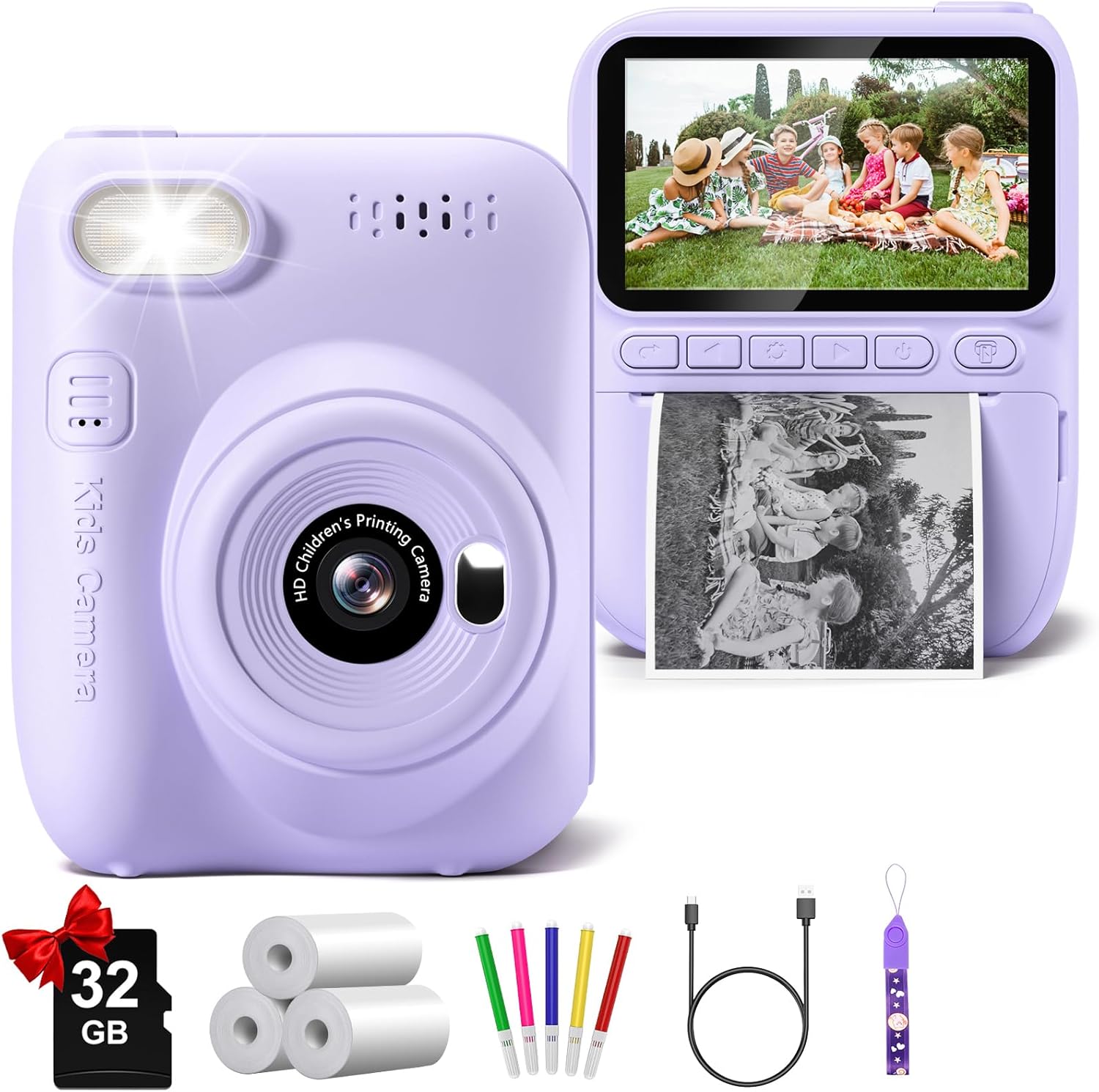 Kids Camera Instant Print, 3.0" HD 32MP Kids Camera Christmas Birthday Gifts for 3 4 5 6 7 8 9 10 11 12 Year Old Girls Boys, 32GB SD Card-Purple