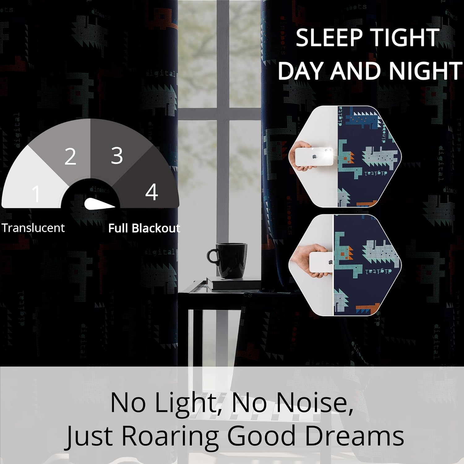 Kids Blackout Curtains - Pixel Dinosaur Curtains, 100% Blackout, 2 Panels, Each W52×L63, Thermal Insulated, Noise Reducing for Kids Bedroom, Bring a Playful and Retro Touch to Your Child’s Room