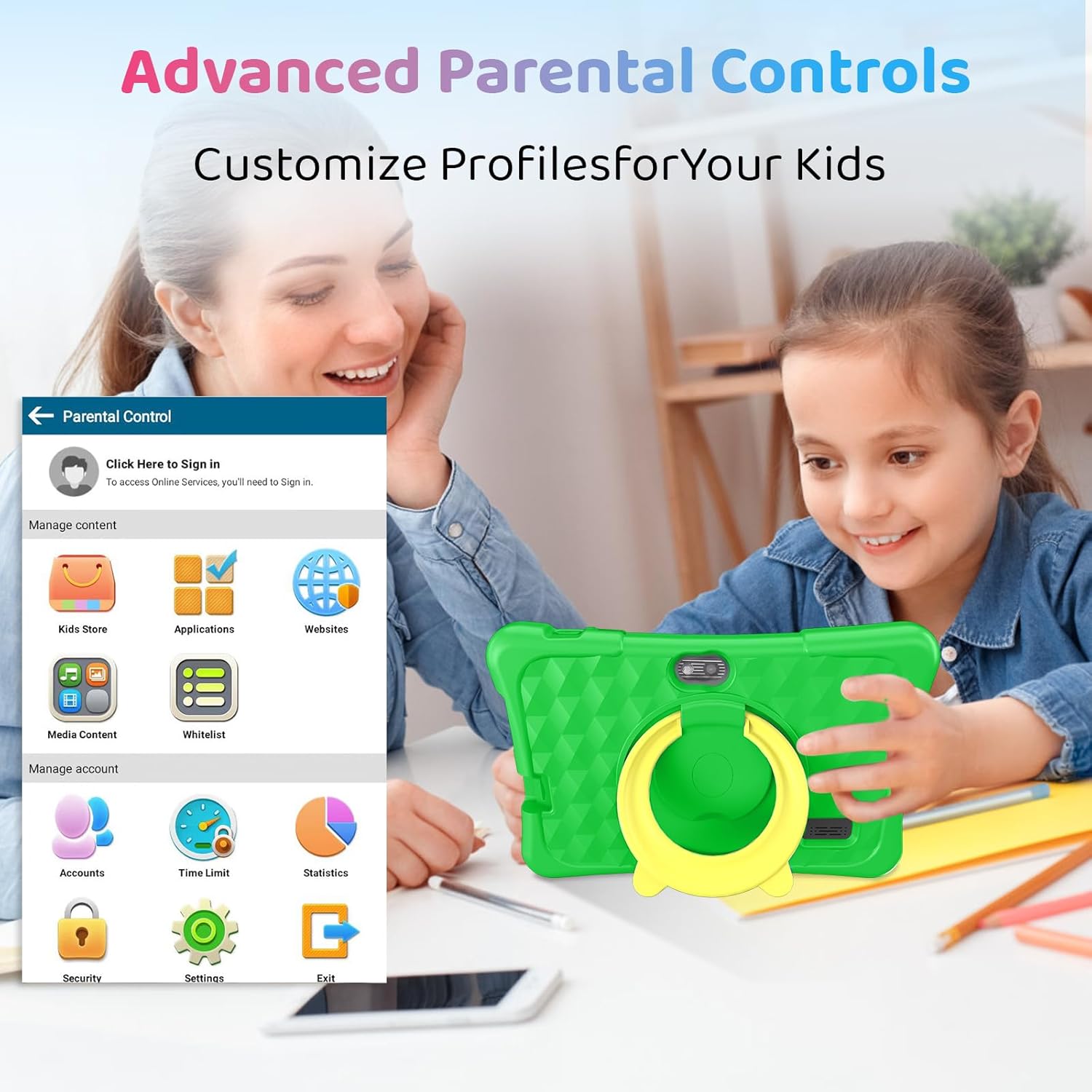 - Durable Design - The children tablet comes with a soft and durable silicone case that resists accidental drops, bumps, and scratches for reliable protection. The rotatable stand allows the tablet to be placed vertically or horizontally, ensuring your childโs comfort during use.