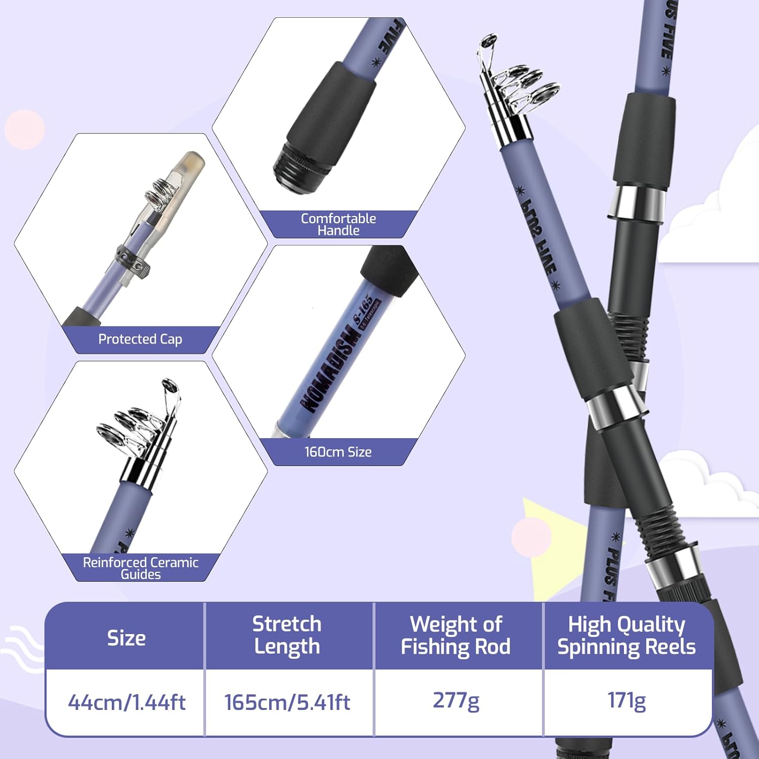 - 🎣 【 Portable and Easy to Carry 】 Kids Fishing Rod features a collapsible design, Telescoping fishing rods are portable, convenient, and easy-to-carry, fits in the car trunk, boat, or backpack. You can take this travel fishing rod and enjoy fishing whenever and wherever you want. Multiple-function collapsible fishing rod for kids, teens, adults, hiking, backpacking, or traveling