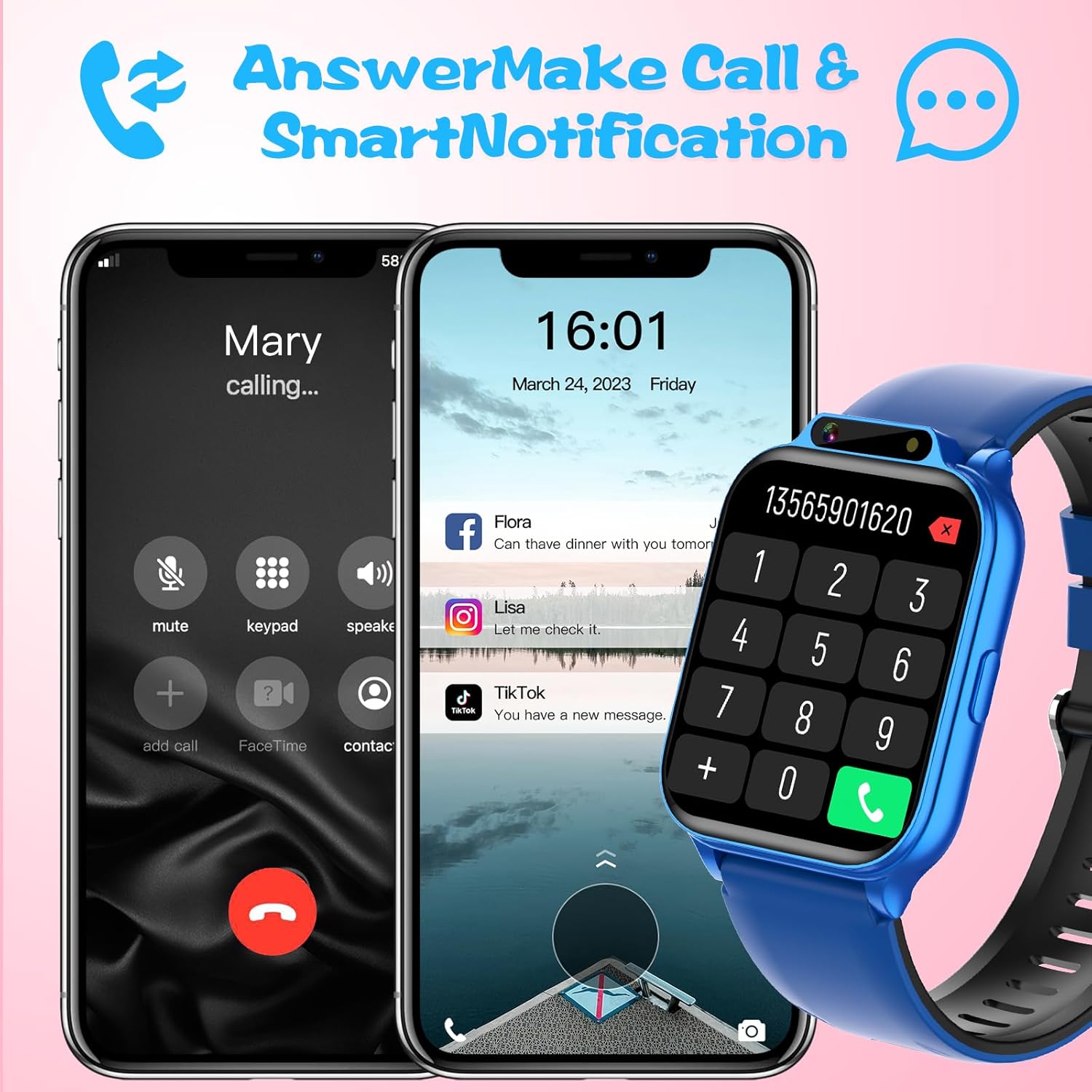 - ăIP68 Waterproof & DurabilityăThis kids watch built with a sturdy stainless steel case(1.5-meter drop tested) and IP68 waterproofing for storms/pool play. Smart Watch for Kids Teens Automatically counts steps, distance, calories burned, and active minutes and Supports 100+ sports modes.