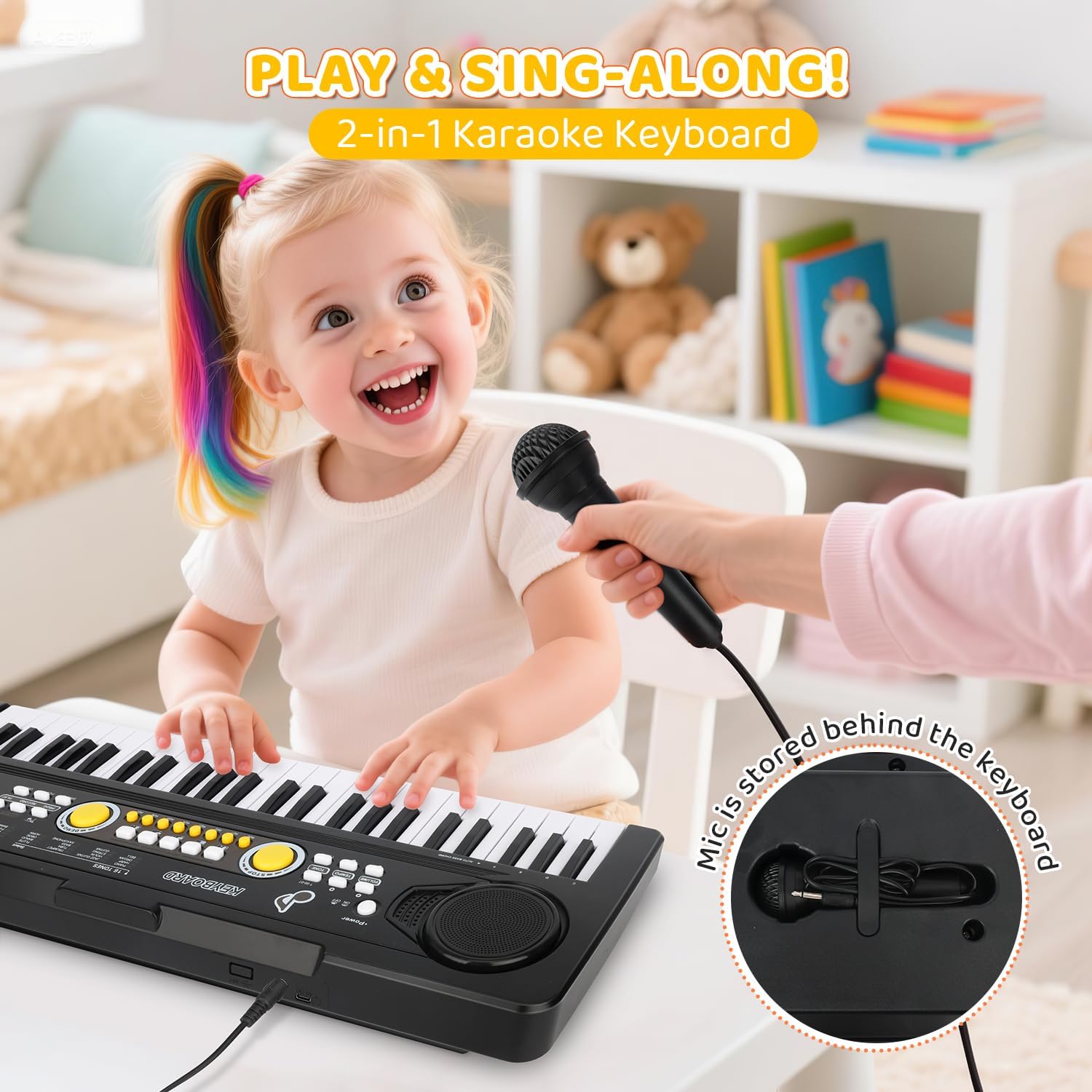 - Easy Controls for Toddlers: Simple controls make this toy piano keyboard easy to use. The size (20.87×7.09×2.28 inches) is perfect for toddlers aged 3-7. The mic is stored behind the keyboard.