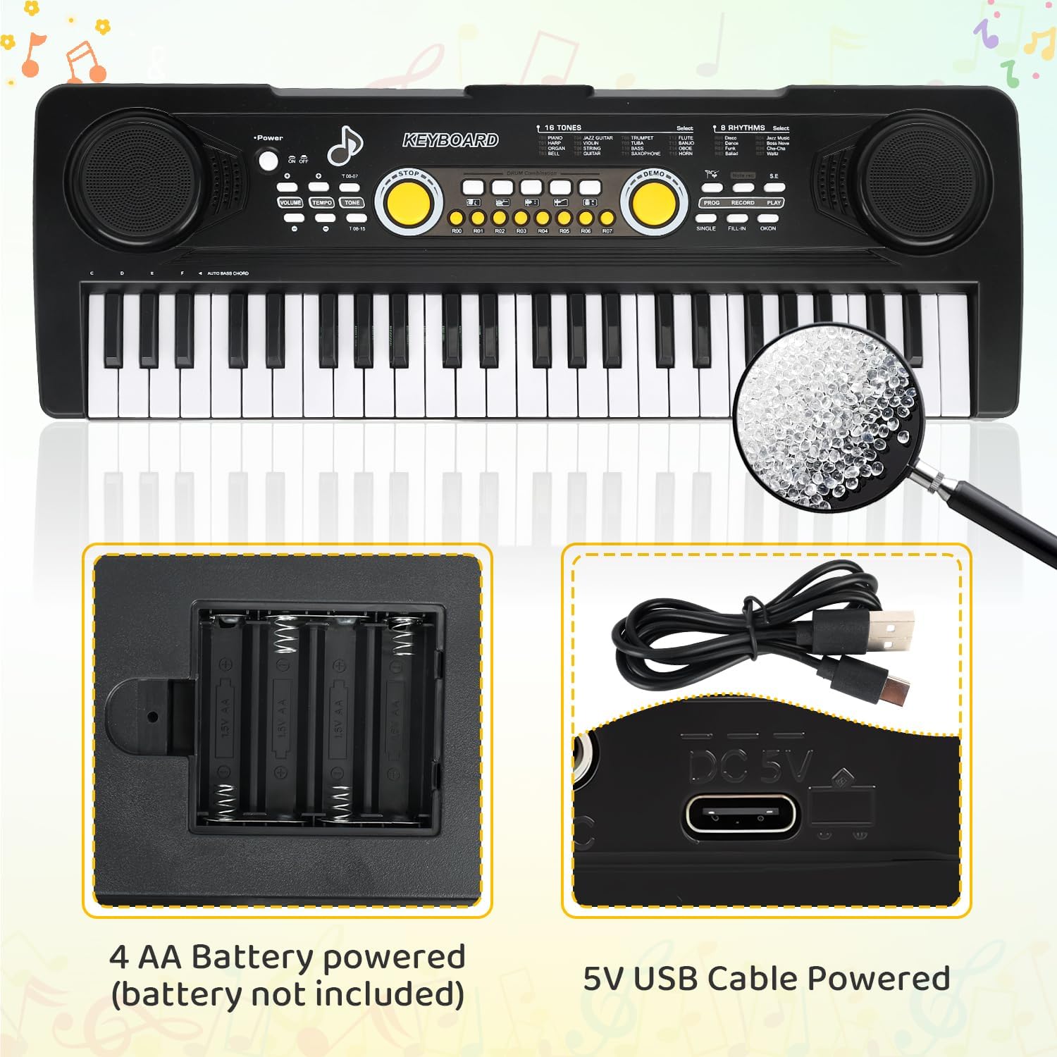 - Educational Kids Piano Keyboard: This 49-key toy piano features 6 demo songs, 8 rhythms, and 16 tones, 5 percussions, sparking creativity while teaching basic music skills. Perfect for young beginners!