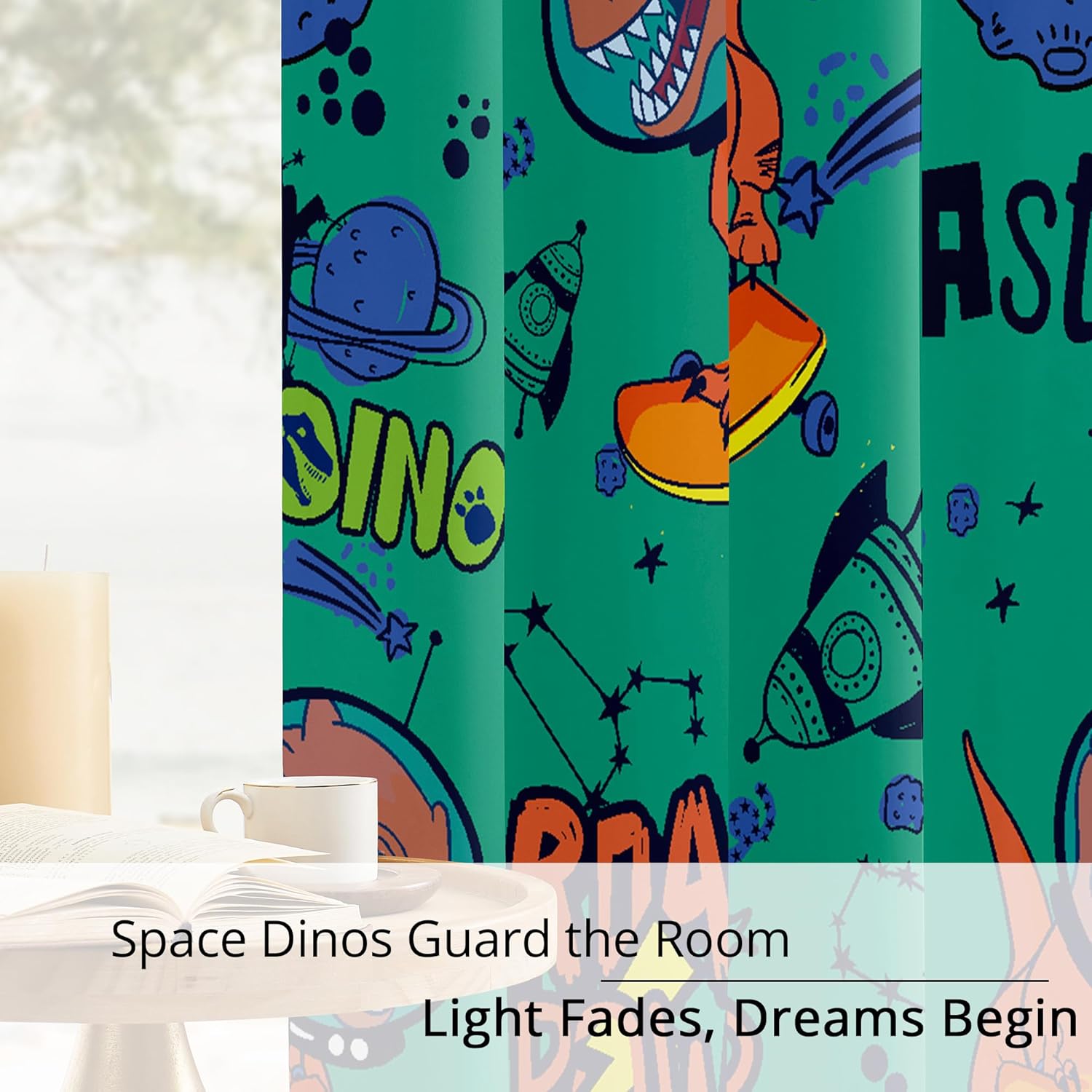 Kids Space Dinosaur Blackout Curtains - 100% Blackout, Thermal Insulated, Noise Reducing, Perfect for Kids Room and Nursery, 2 Panels (Roar Power Dino, W52×L84)